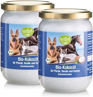 Für die äußerliche Anwendung erwärmen Sie eine kleine Menge Kokosöl in den Händen und massieren es sanft ins Fell ein. Das spendet Feuchtigkeit, reduziert Schuppen und sorgt für seidigen Glanz.